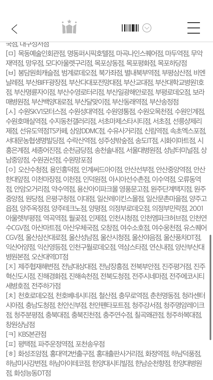 또 다음과 같이 행사 매장이 정해져 있으니 리스트 확인하셔서