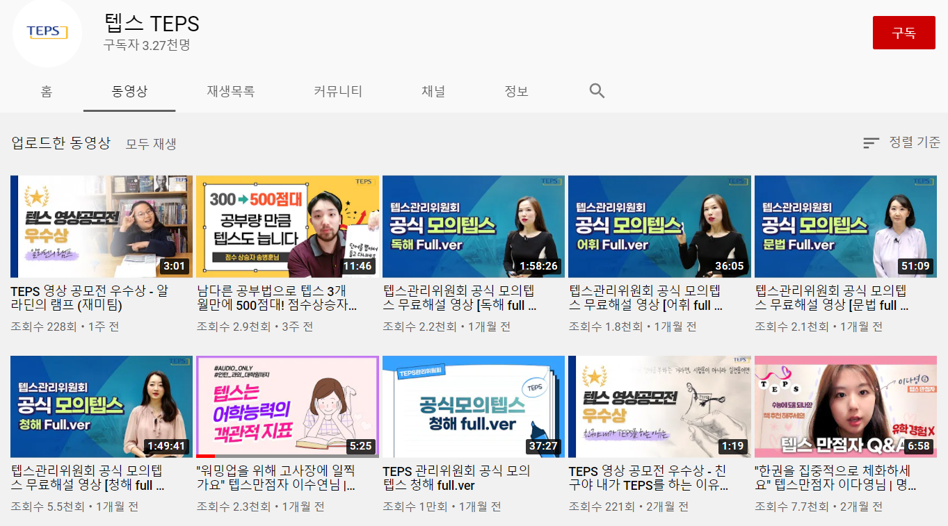 텝스 만점을 받으신 분의 영상이나 텝스 점수를 올리는 데에 도움이 될만한 영상들이 많이 있기 때문에