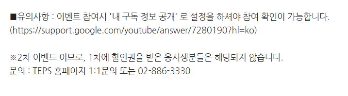 참여 방법은 텝스 공식 유튜브 채널을 구독하신 뒤에