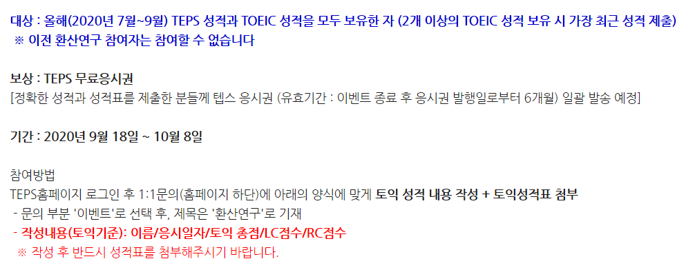 참여하신 분들께는 텝스 TEPS 무료 응시권을 드립니다.
