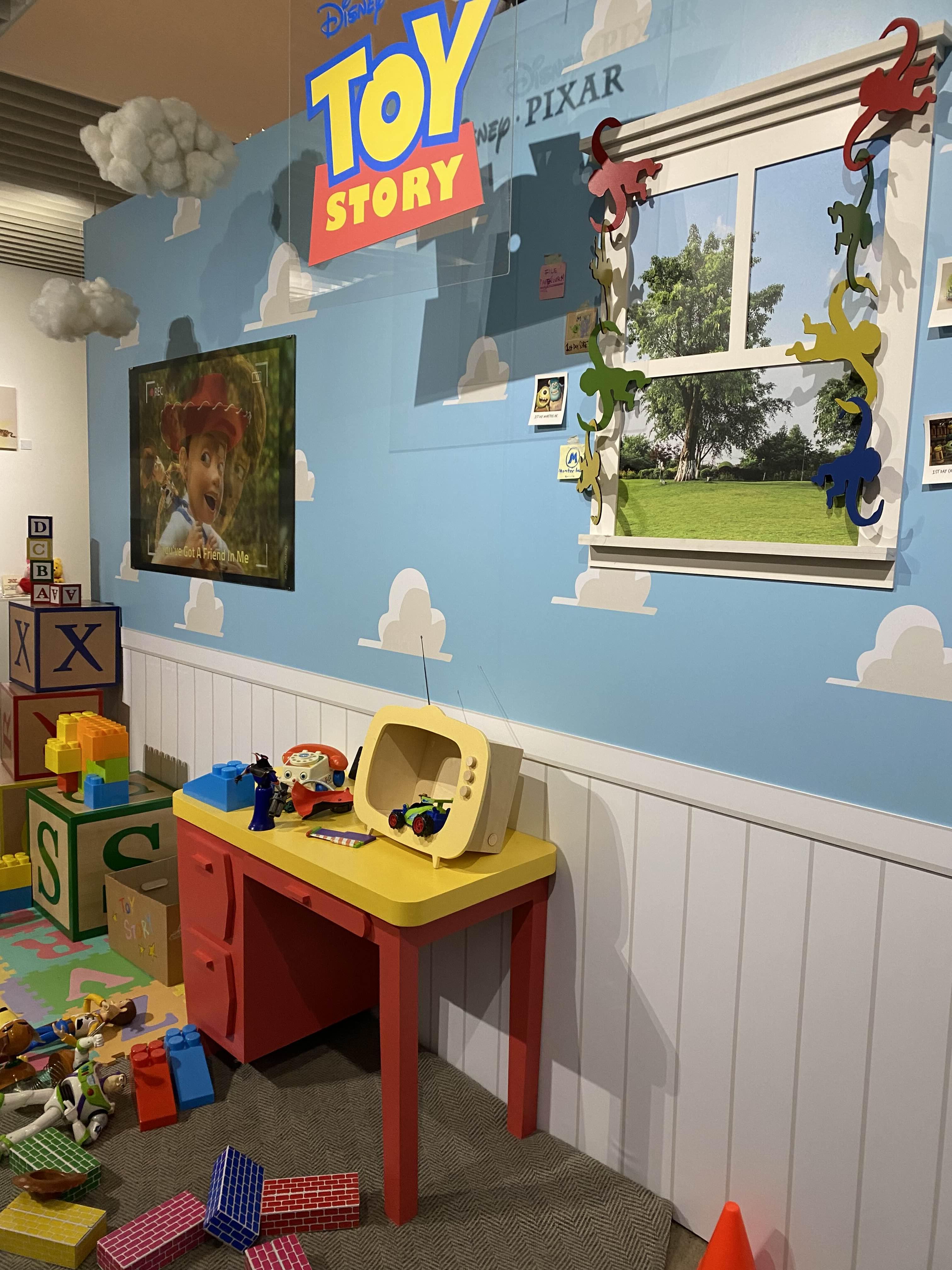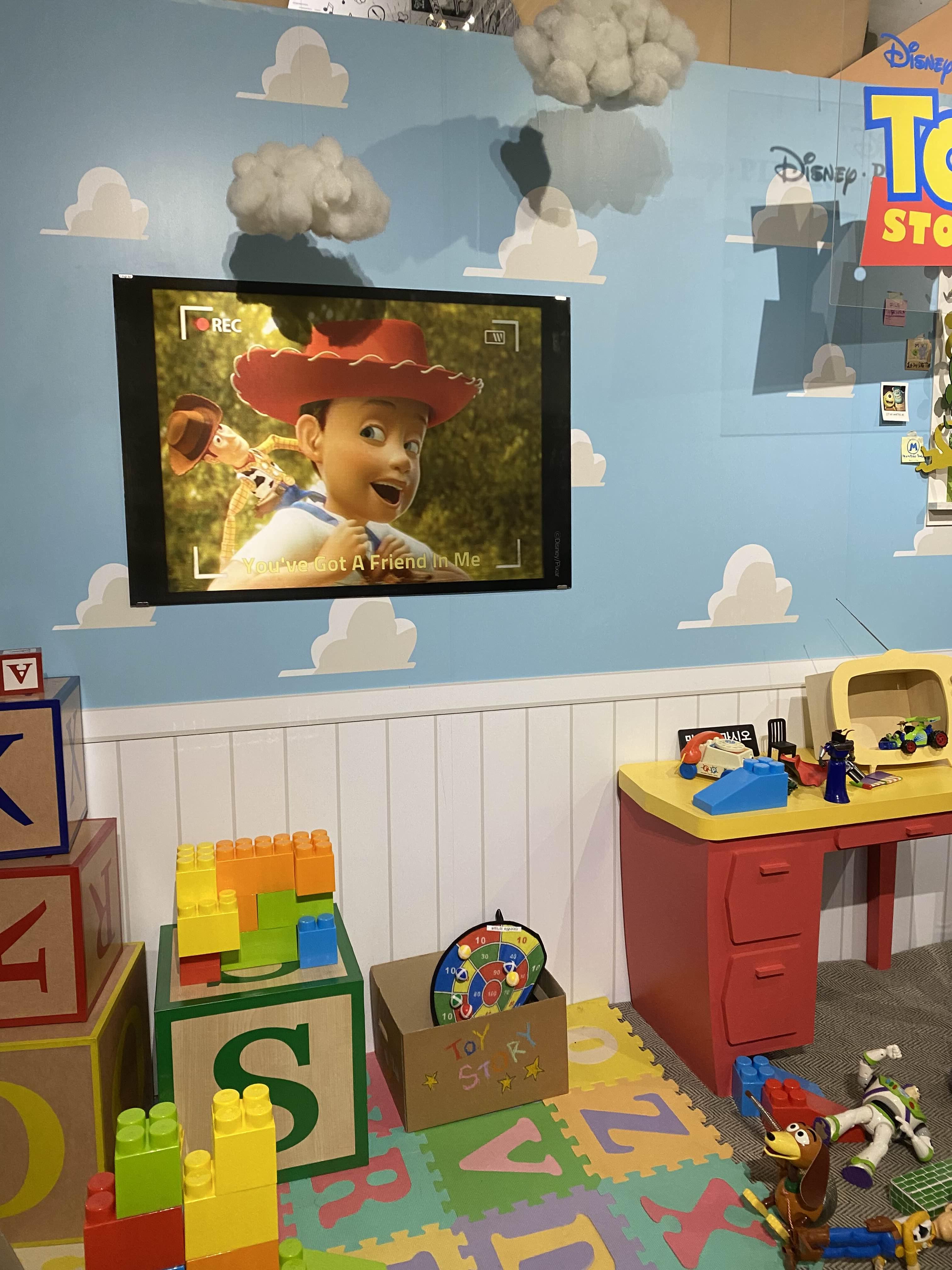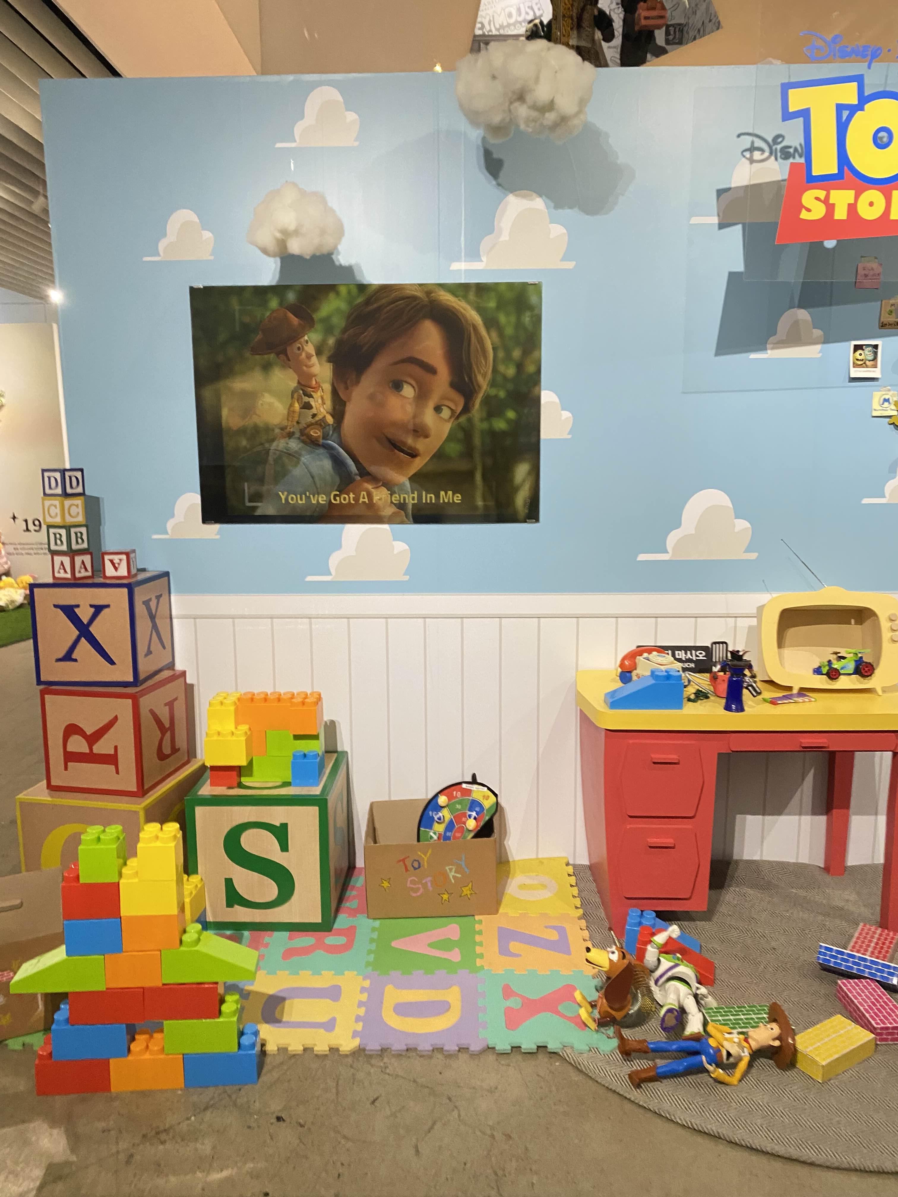 이렇게 홀로그램이 있는 토이스토리 포토존도 있어요!