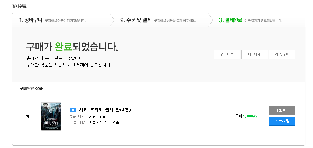저는 '해리포터와 불의잔 (4편)'을 소장으로 구매했습니다.