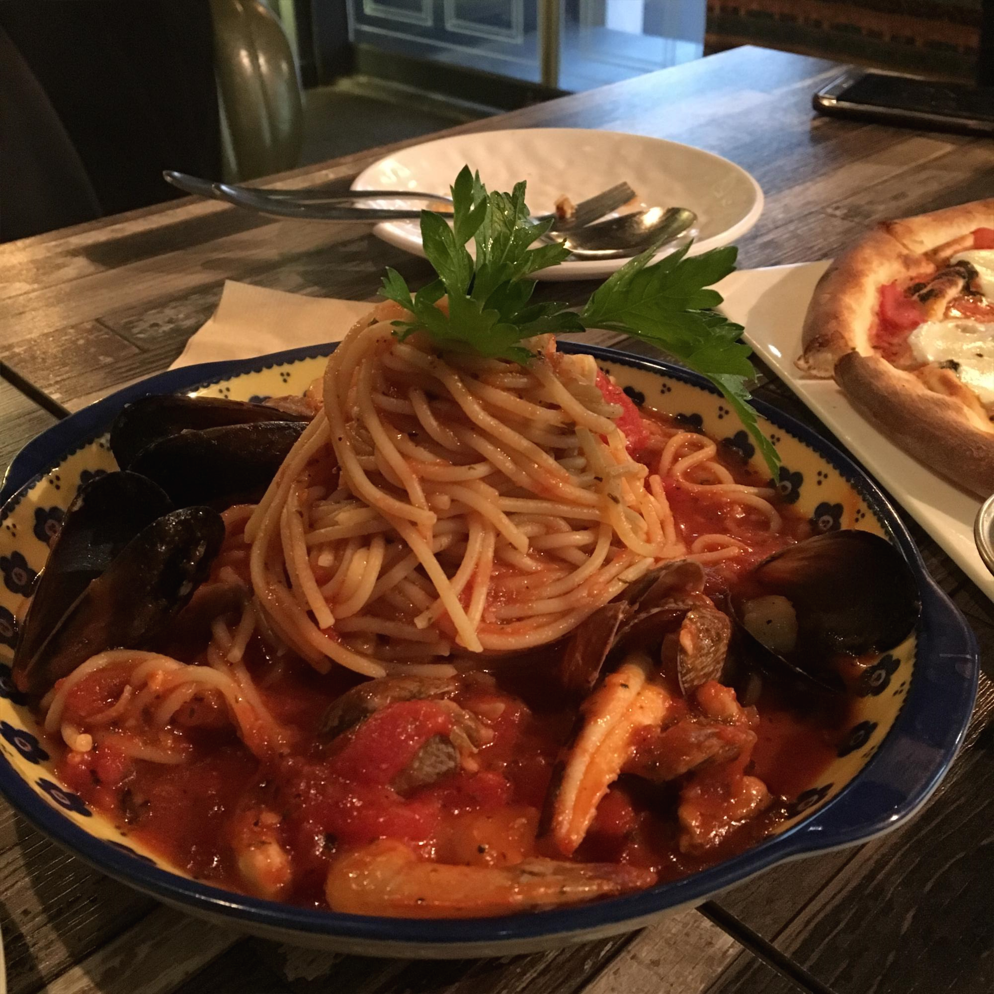 해산물 토마토 파스타에 들어있는 해산물은 정말 크고 종류도 다양해서 좋았습니다. 보통 해산물이 많으면 가격이 더 비싼데 이 식당은 상대적으로 저렴하다고 생각됩니다.