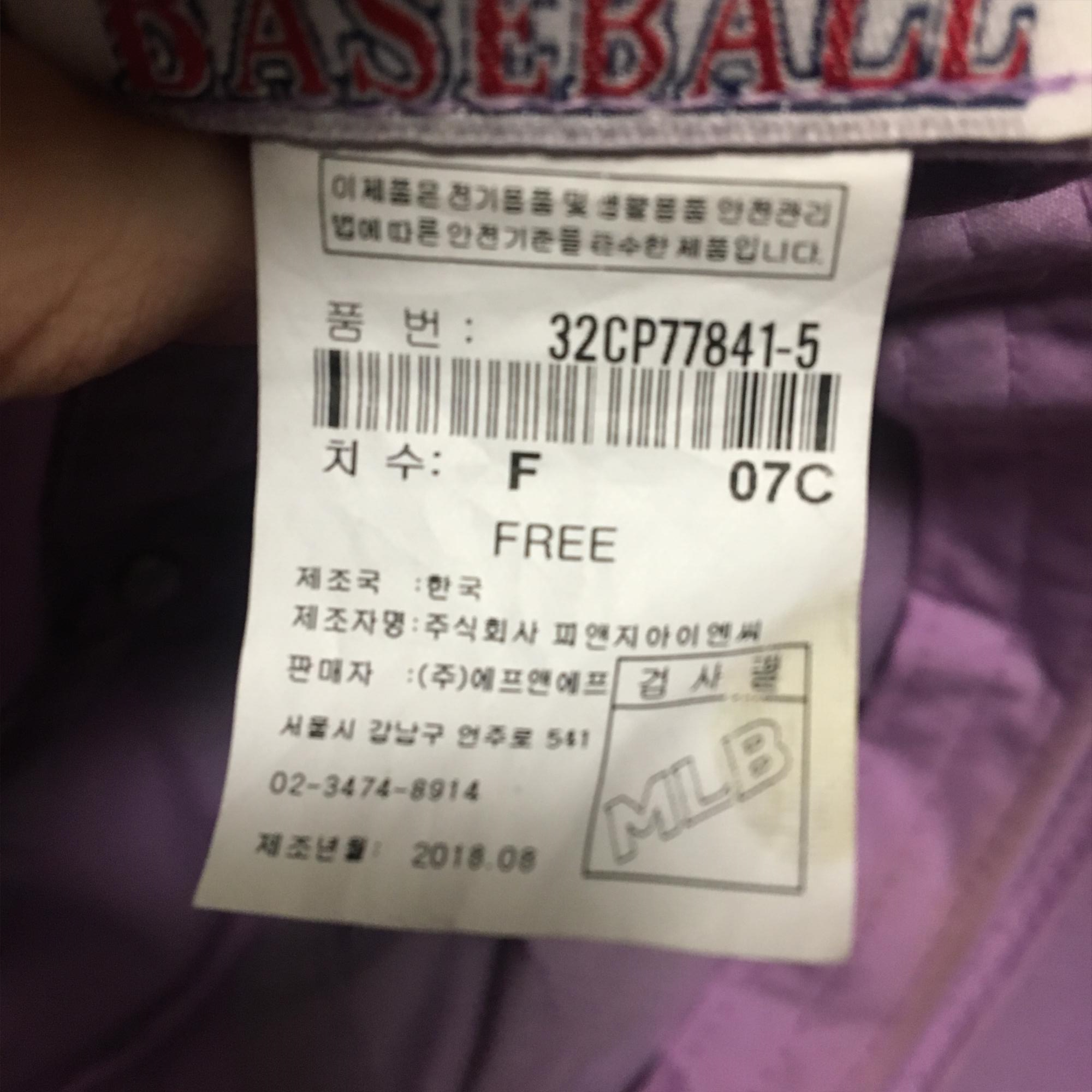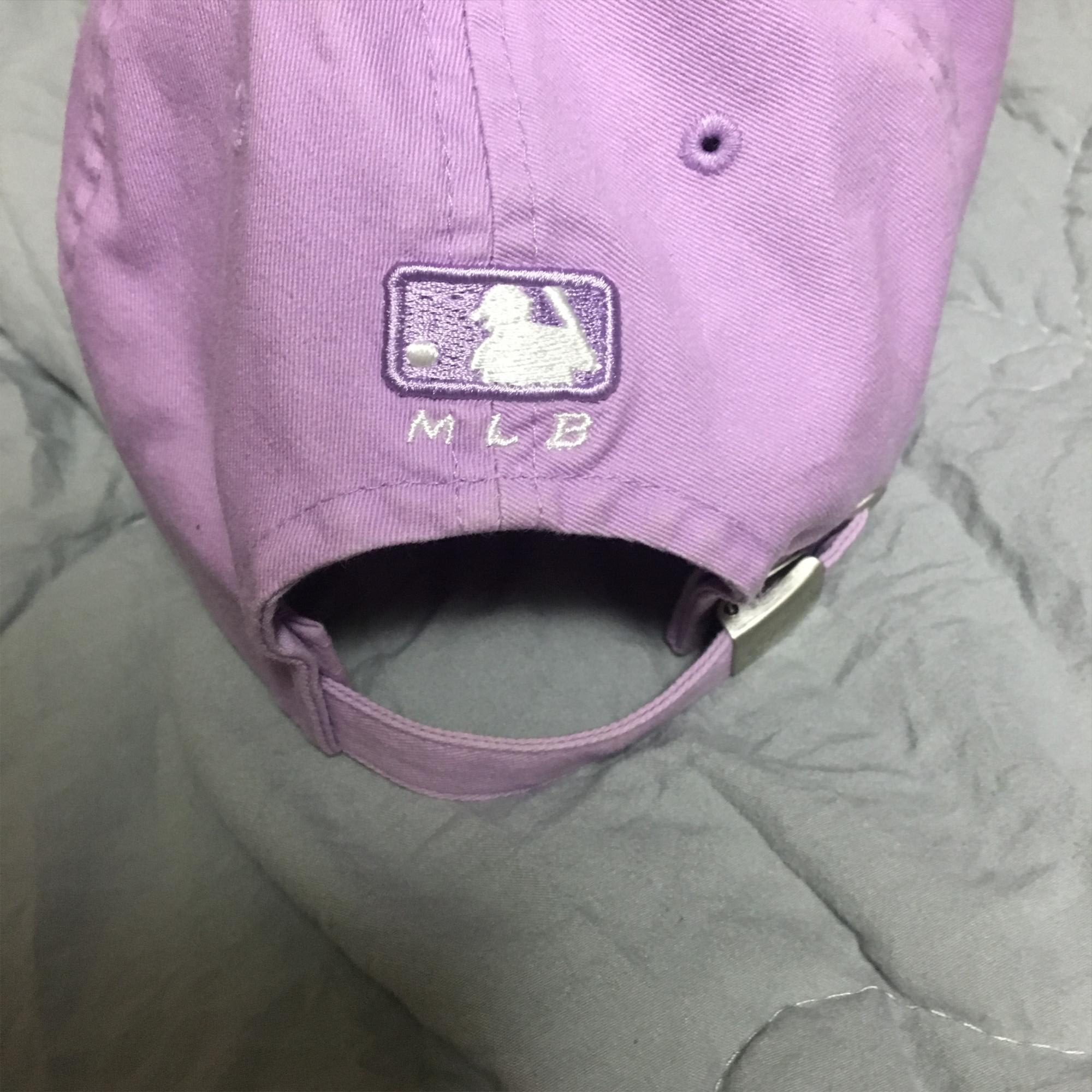 뒤에는 이렇게 엠엘비 마크가 자수로 새겨져 있습니다. 모자의 색상과 같은 연보라색 실을 사용해서 그렇게 눈에 띄지 않아서 더 좋습니다!뒤에 모자 크기를 조절하는 부분은 저렇게 쇠로 되어있습니다.