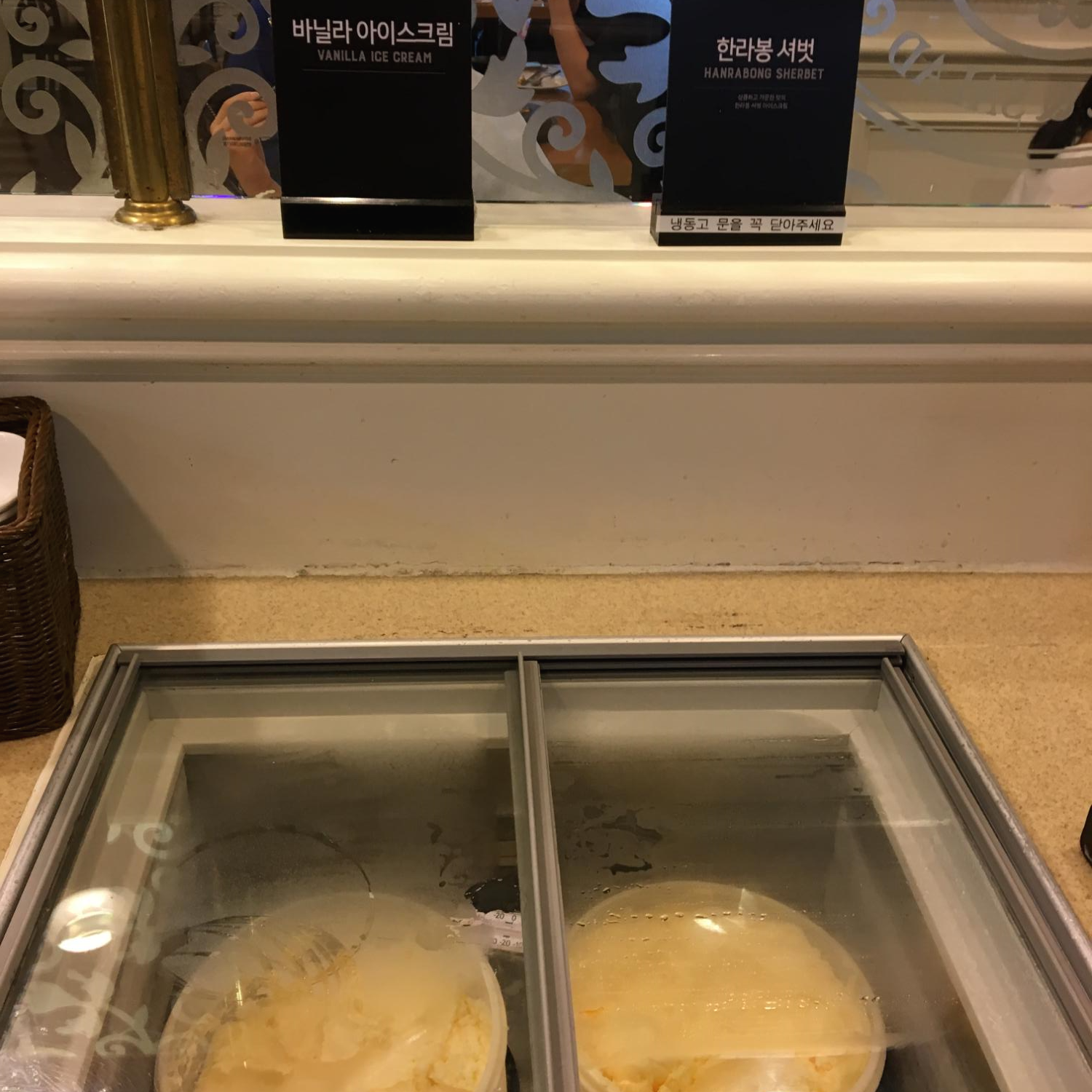 그 위에는 생크림이나 사과잼을 올려서 먹을 수 있었습니다. 저는 특히 아이스크림을 올려서 먹은 게 맛있었는데, 한라봉 맛 아이스크림이 더 잘 어울렸습니다.