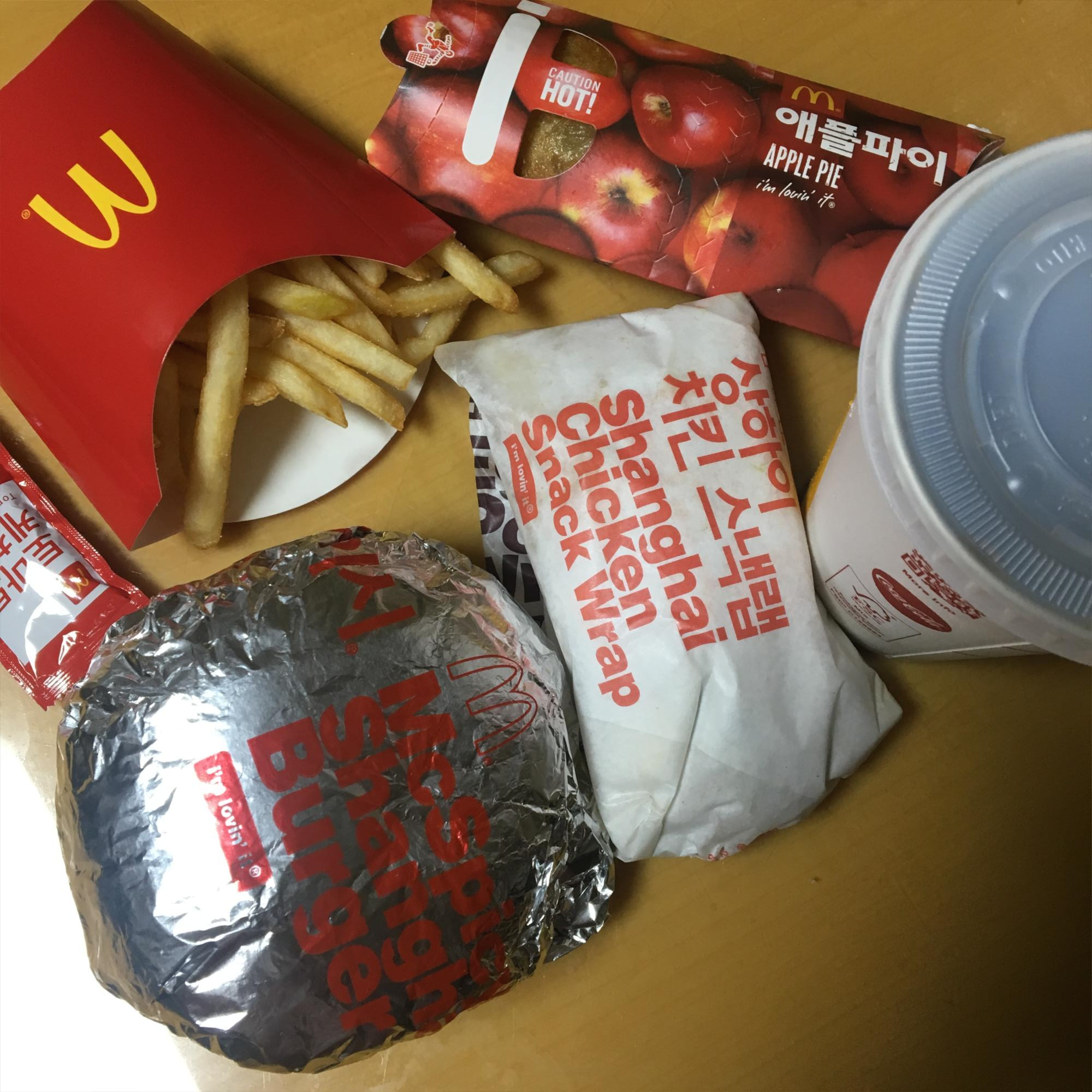 양이 그렇게 많지 않으신 분들이라면 저녁밥으론 상하이 버거 세트를 먹고 아침밥으로 애플파이와 상하이 치킨 스낵랩을 드시면 좋을 것 같아요!