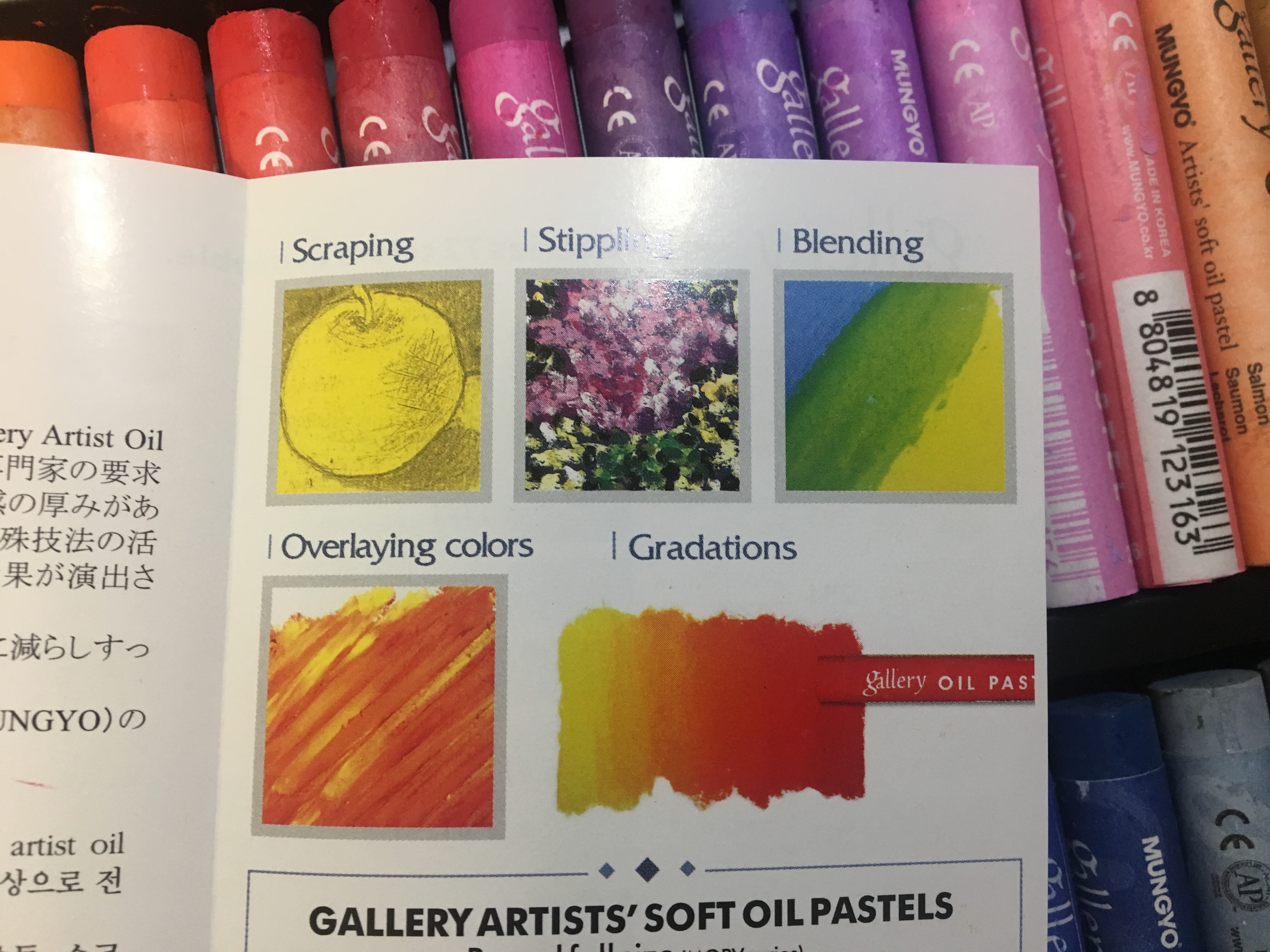 또 이렇게 오일파스텔로 할 수 있는 다양한 기법들이 적혀있습니다.