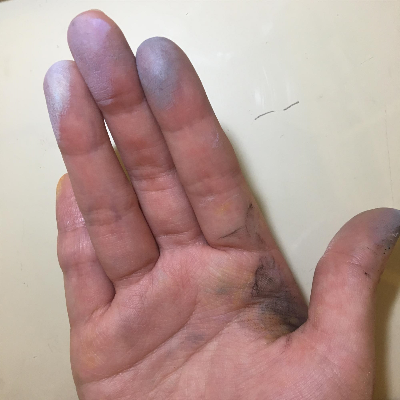 위 사진은 제가 실제로 처음으로 오일파스텔을 사용한 뒤에 찍은 제 손 사진입니다 ㅎㅎ(더럽쥬?)