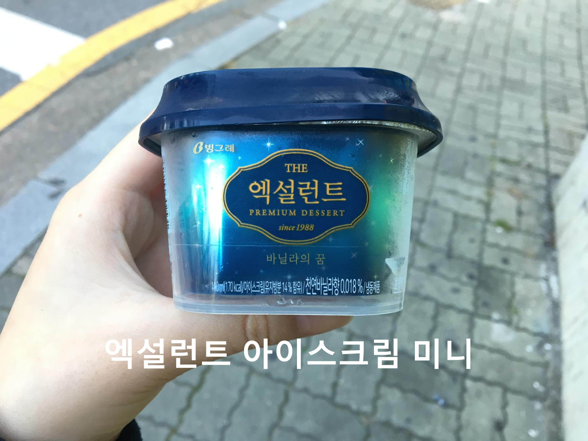 용량을 보시면 아시겠지만 한손에 들어올 정도로 작은 크기의 아이스크림입니다. 딱 질리지 않을 정도로 먹을 수 있어서 좋은 크기라고 생각합니다.