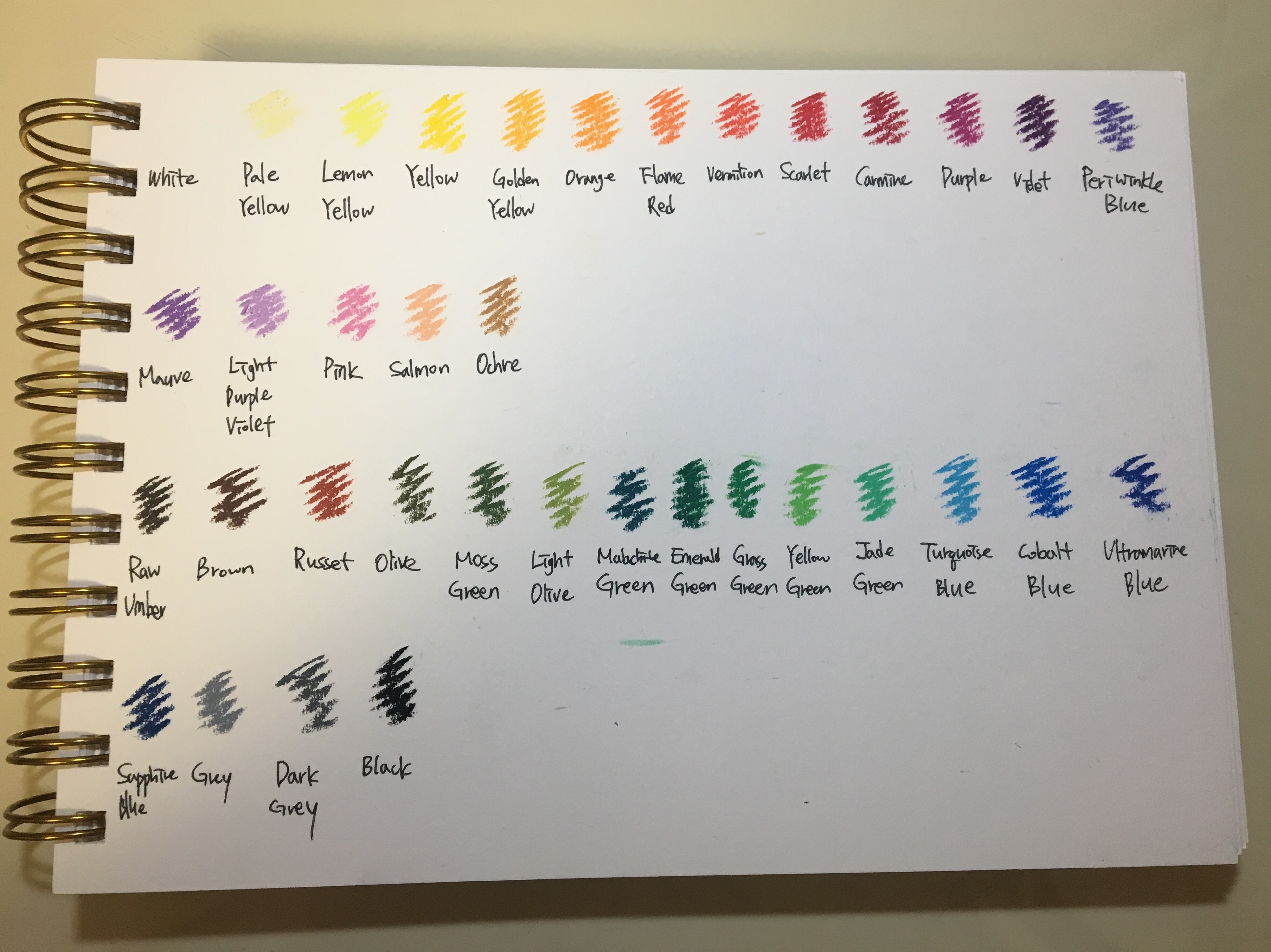 삐뚤빼뚤하지만 제가 적어놓은 색상 및 이름들을 보고 구매 전에 36색에 들어있는 색상들을 참고하세요!