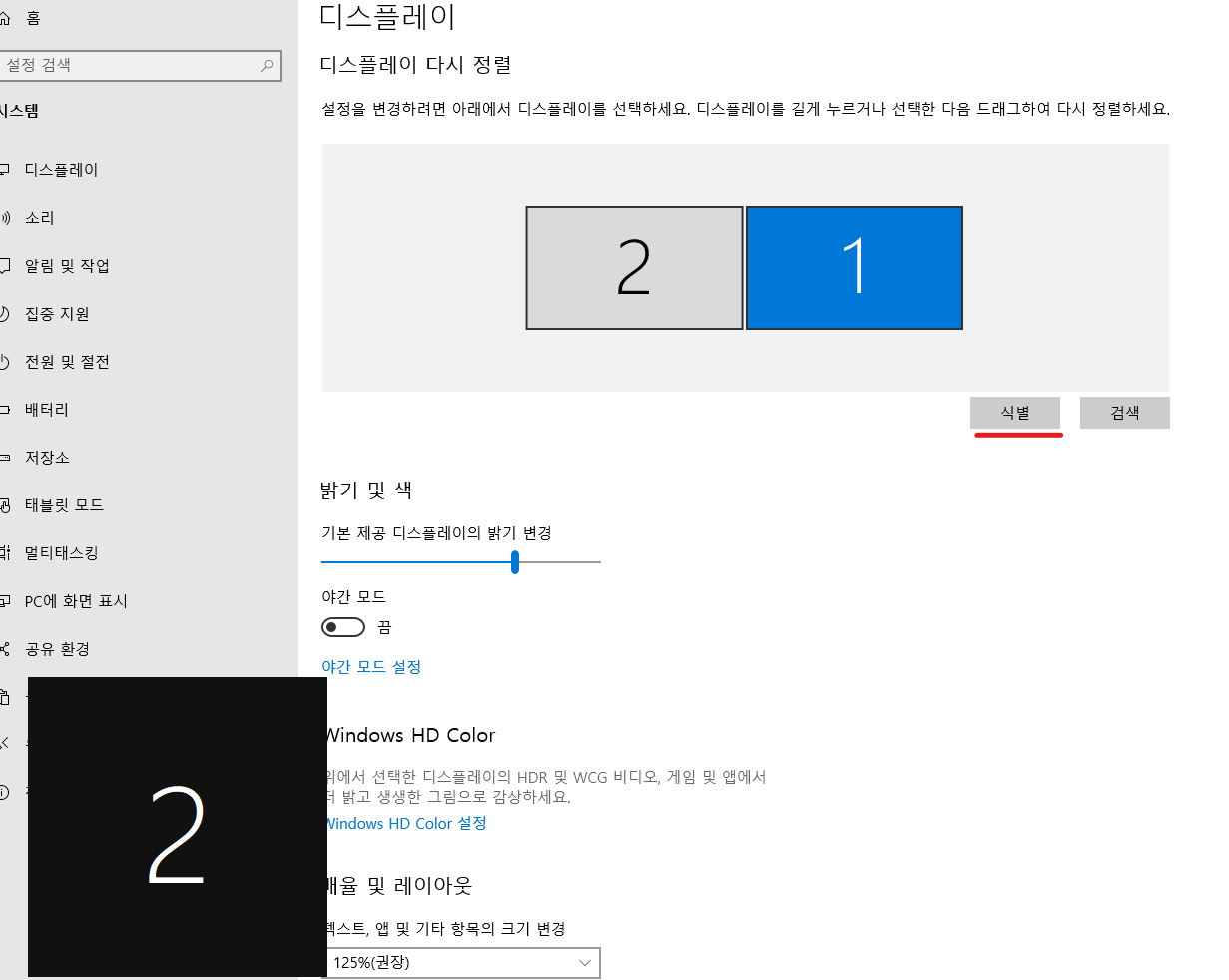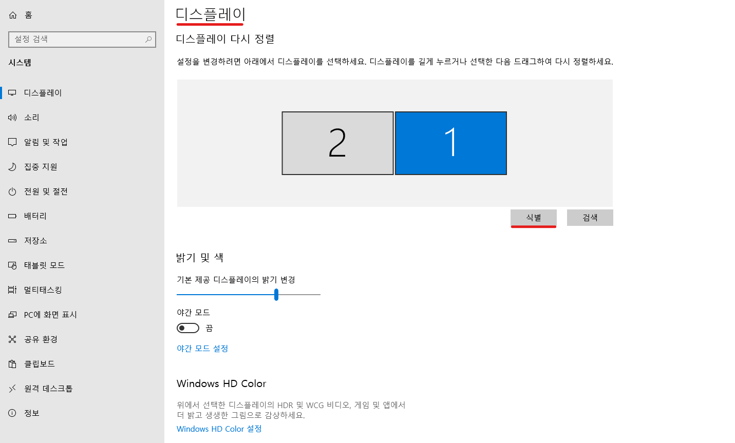 이렇게 설정하면 듀얼 모니터 설정 끝입니다!