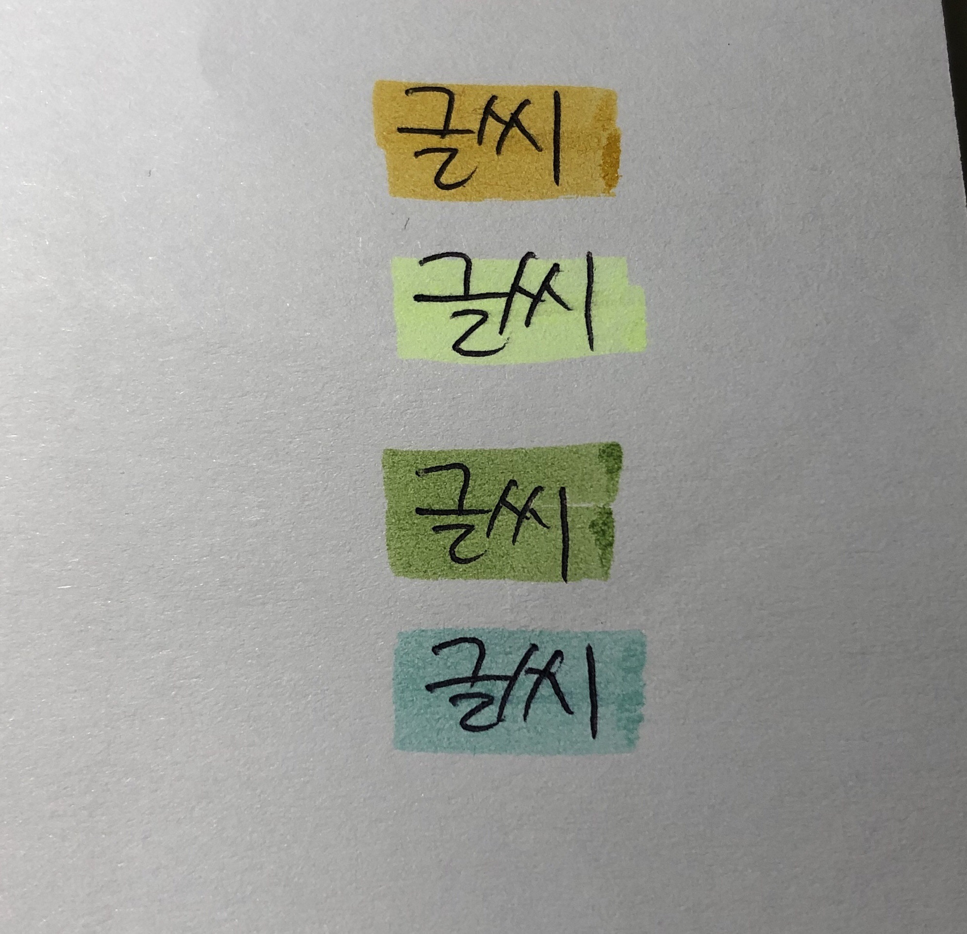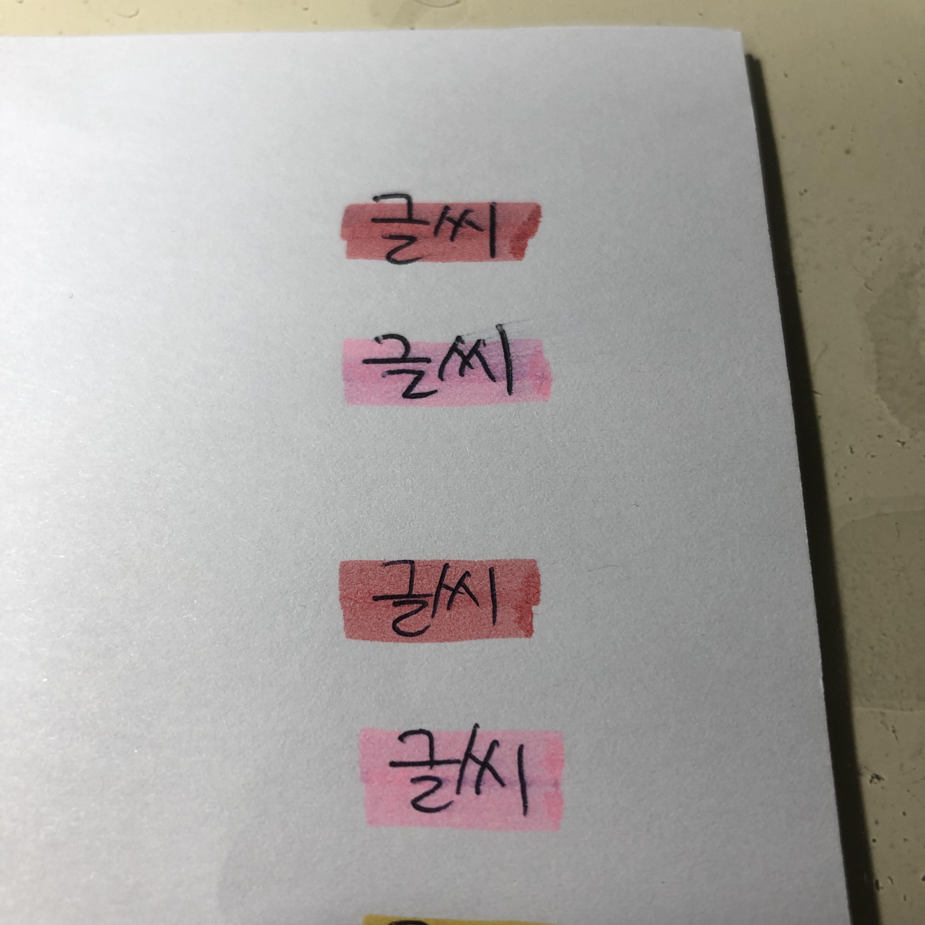 이제 어느 정도 색이 진한지, 연한지에 대해 글씨를 써서 비교해 드리겠습니다.