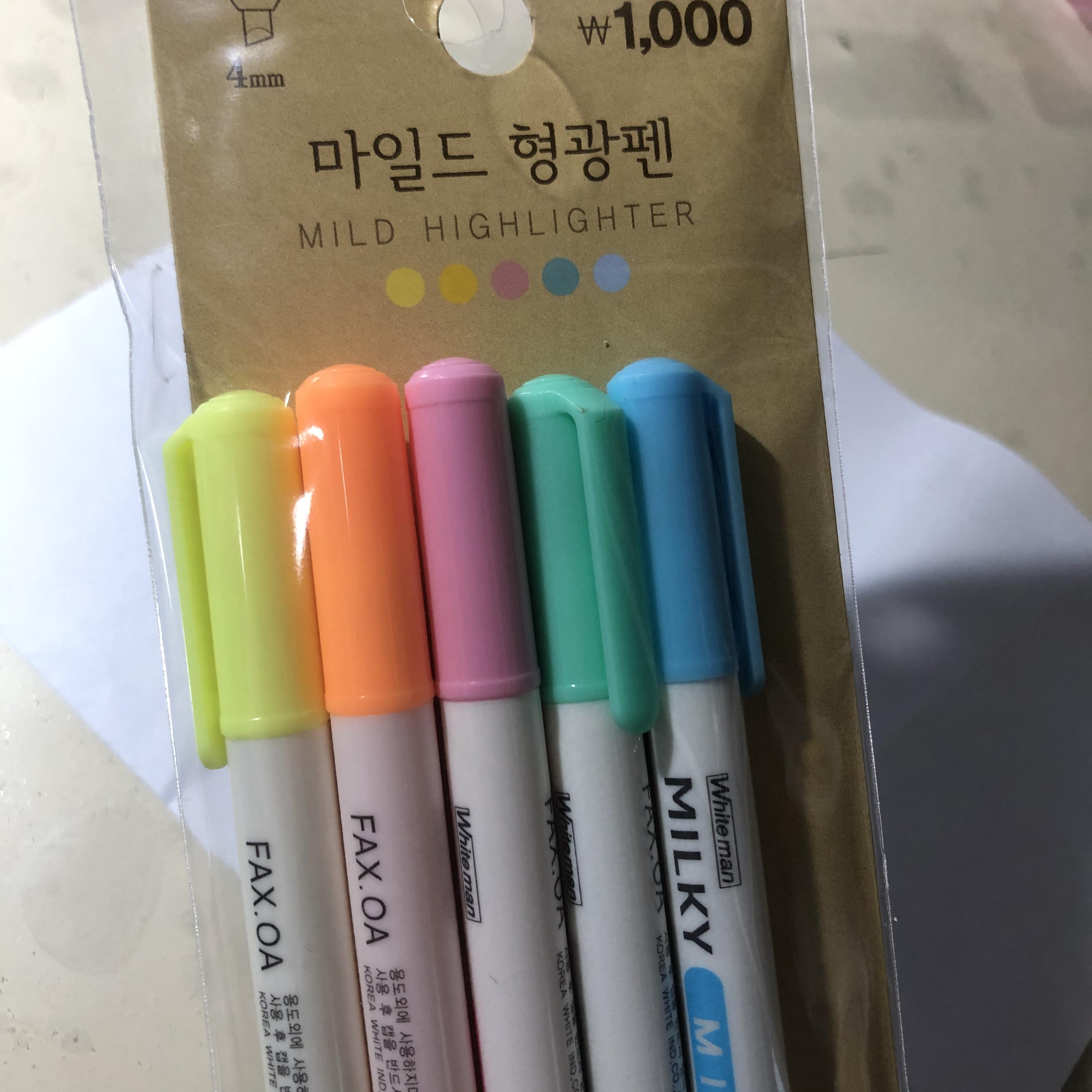 1000원에 무려 5개의 형광펜이라 각각 200원에 구매했습니다.ㅎㅎ