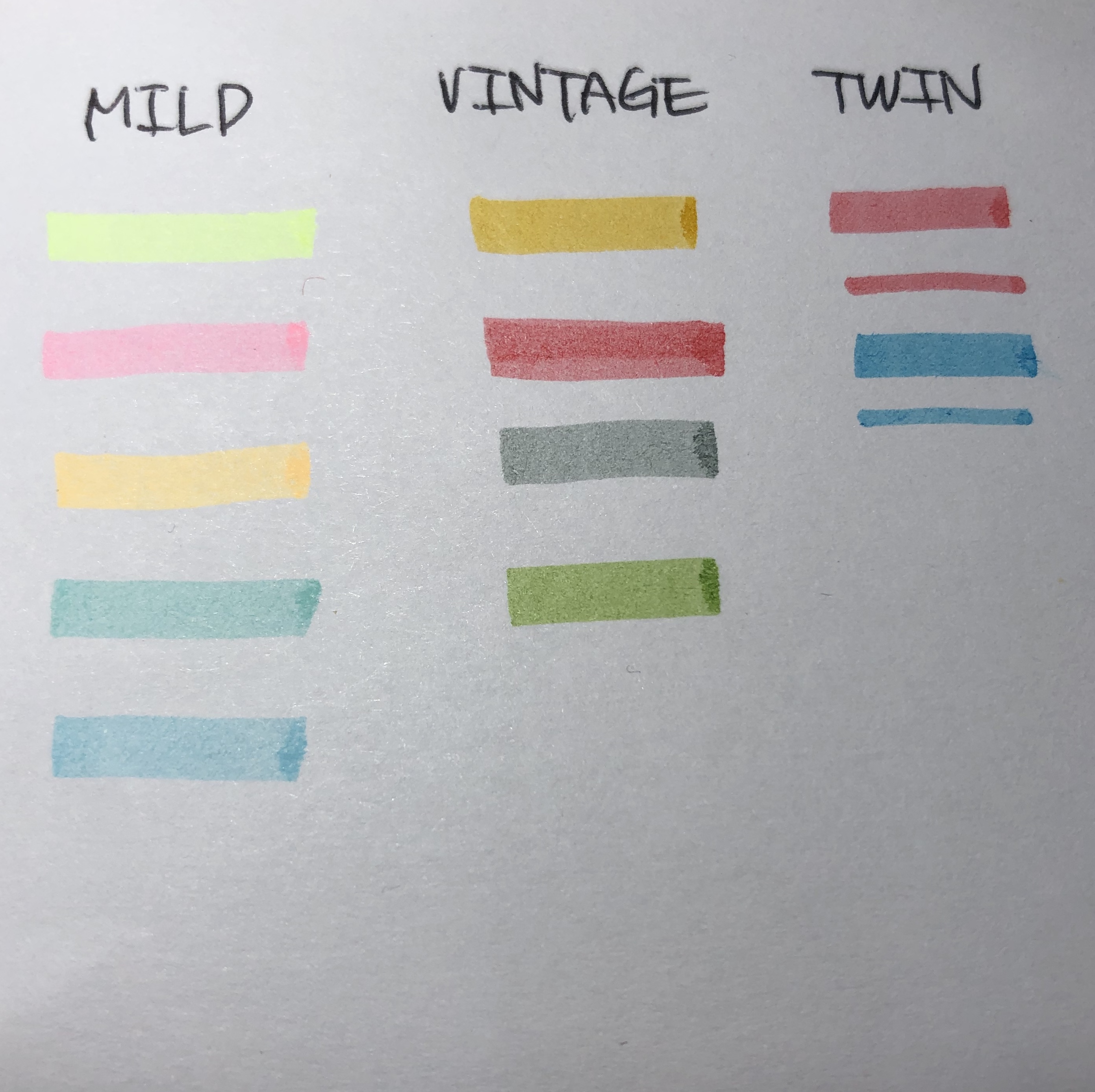 저는 이번에 구매한 형광펜을 포함해서 마일드 형광펜, 빈티지 형광펜, 트윈 형광펜이 있습니다.