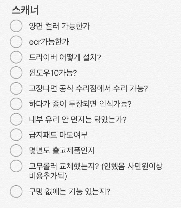 그래서 오늘은 제가 중고 스캐너를 구입 시에 직접 공부하고 작성한 체크리스트를 공유해볼까 합니다.