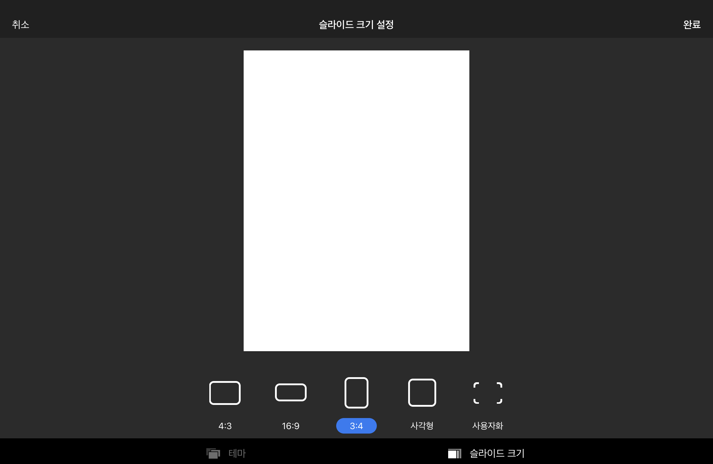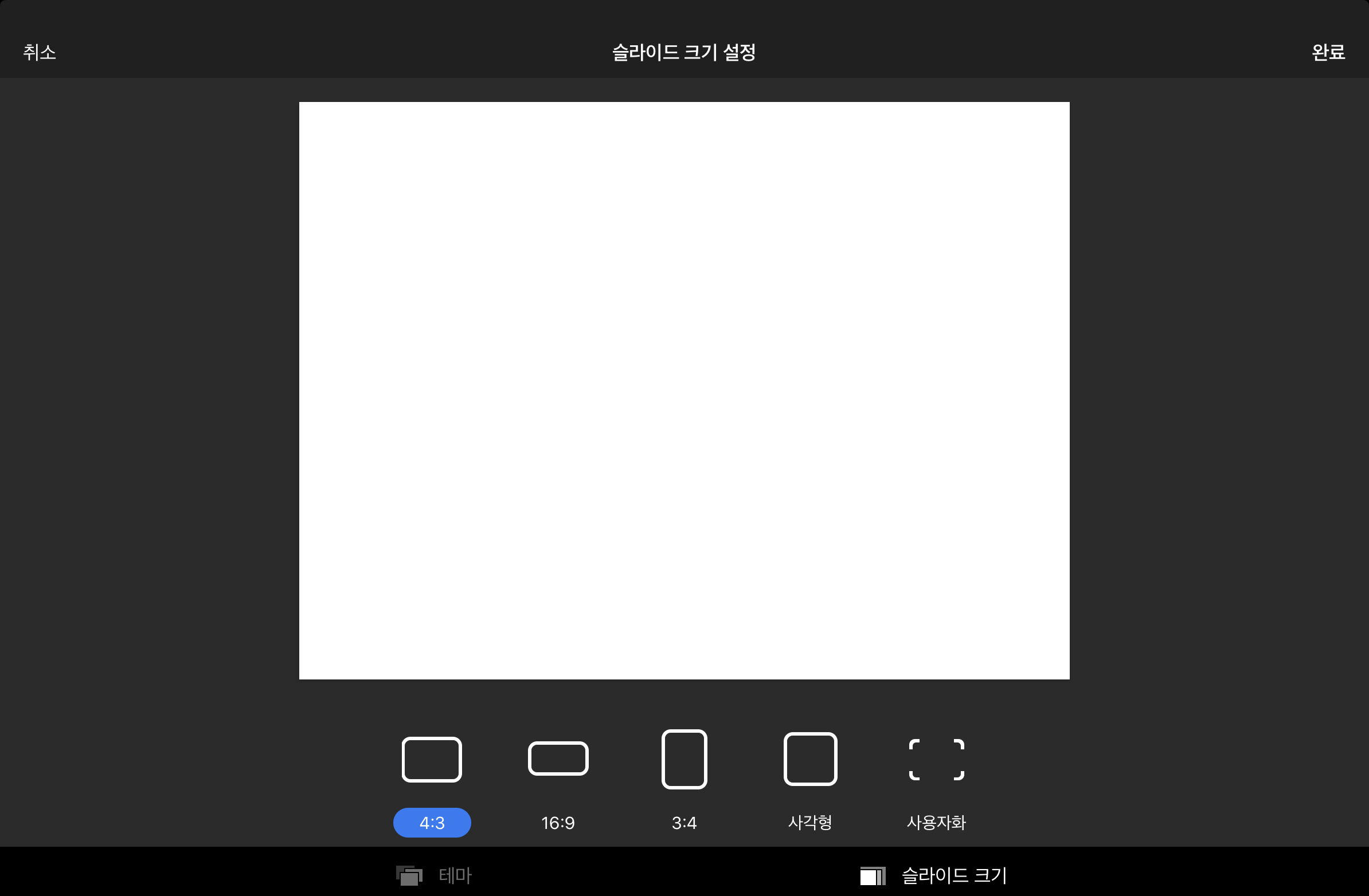 여기서 원하시는 슬라이드의 크기를 선택하시면 됩니다.