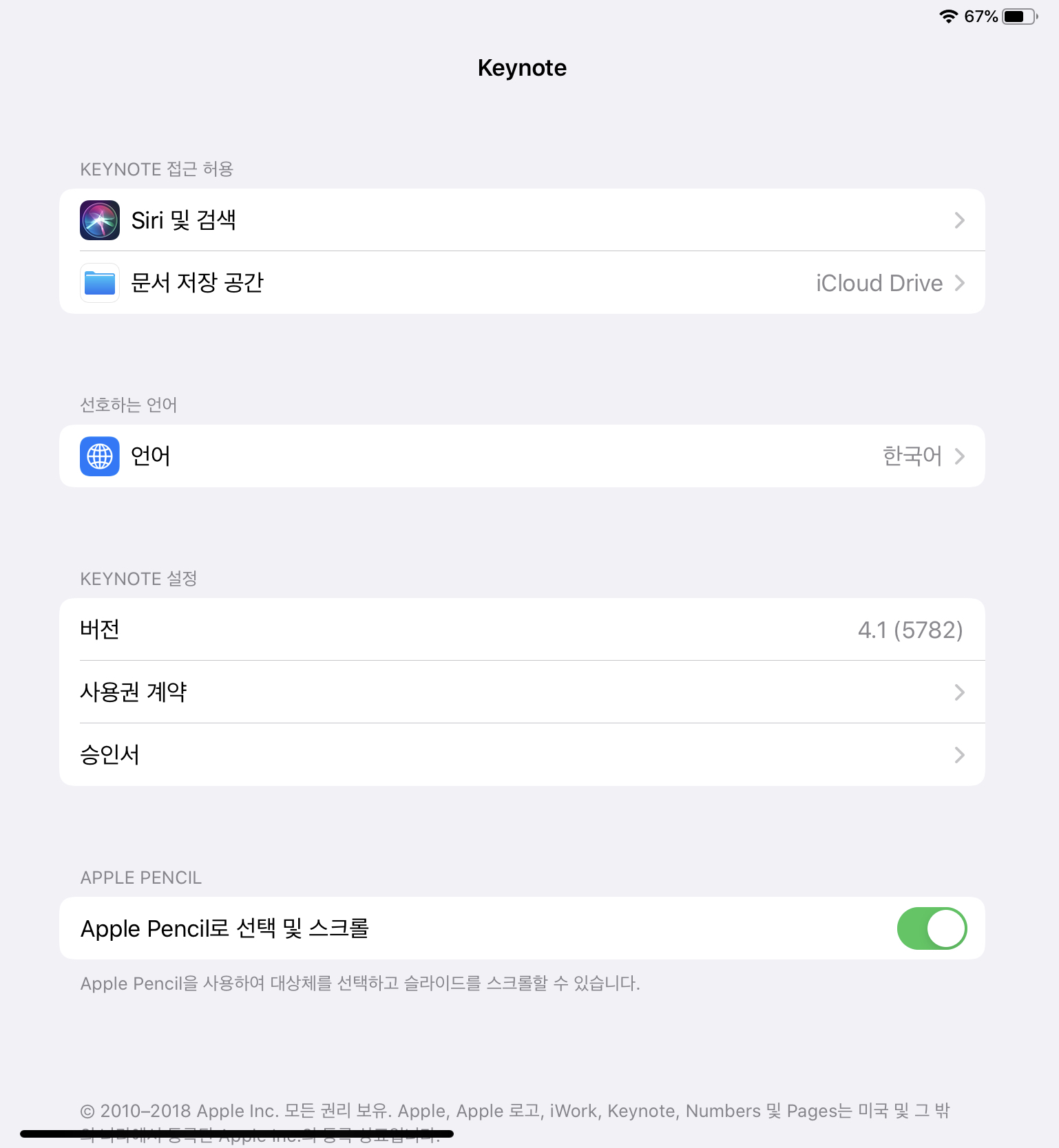 그 후, '키노트'어플에 대한 설정으로 들어갑니다.